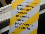Ci-dessus quelques pages extraites de Longtemps, je me suis couché de bonne heure pour raisons de sécurité de Thomas Baumgartner, paru en septembre 2015 au Monte-en-l’air.