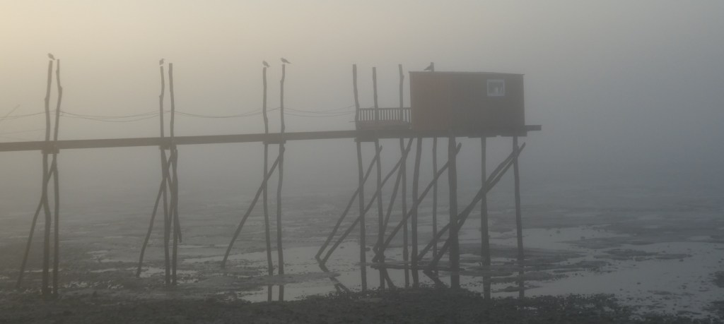 La brume est encore plus épaisse ce matin. Je conditionne mon départ à l’arrivée du train de ma chérie. Sans le soleil, les nuances de gris dominent. On est aussi plus attentif aux silences. Je vois les couleurs lentement apparaître.