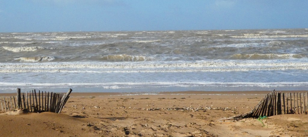 La terrasse est mouchetée de sable. Ça cogne toujours, bourrasques, averses, et goutte-à-goutte dans le passage. Cette météo tourmentée offre de petits instants poétique : je roule dans une zone commerciale avec un superbe arc-en-ciel devant moi et, l’instant d’après, je me retrouve bloqué par des tourbillons de pluie, sur un parking et sous une ombrière photovoltaïque. La maison à l’angle de ma rue a entièrement perdu sa toiture. On discute de la soirée de la veille avec le patron de la crêperie voisine. C’est toujours étonnant comment à chaque événement extraordinaire (un confinement, un séisme, une grosse tempête), on se met à parler spontanément à des gens à qui on ne parle jamais, pour demander si tout va bien, s’il y a à déplorer des dégâts. On écoute les récits d’infortune de chacun, et on témoigne évidemment de sa propre expérience. Fort heureusement, ces assauts de civilité ne durent jamais bien longtemps, sinon on ne pourrait pas faire trois pas dans la rue sans s’arrêter. Le sable de la plage est venu s’entasser contre le muret de la promenade, et s’est déversé dans les rues adjacentes. Des pouce-pieds ont été rejetés sur la plage, c’est la première fois que nous en voyons ici. Je me souviens que quand nous vivions à Lisbonne, nous aimions voir fleurir aux portes des bars les panneaux de carton écrits à la main indiquant des arrivages récents de pouce-pieds (« ha perceves ») ou de petits escargots de bord de chemin (« ha caracóis »). Ma chérie et moi ramassons des coupelles de collecte pour les naissains d’huîtres, qui se sont échouées en masse sur la plage et nous allons les jeter dans le bac à marée. Le marchand de fruits et légumes bio m’offre sa dernière clémentine. Deux moineaux ont déjà élu domicile dans un trou de corniche tombée dans la nuit. Je passe la terrasse et la baie vitrée au jet d’eau, pour enlever le sable. J’ai fredonné Magic Spell, de This is the kit, toute la matinée.