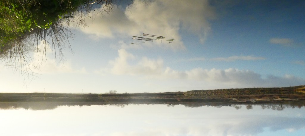Petit répit dans notre longue traîne de tempêtes et de pluies. Je retrouve le chemin de la baie. Les reflets dans les marais sont presque parfaits.