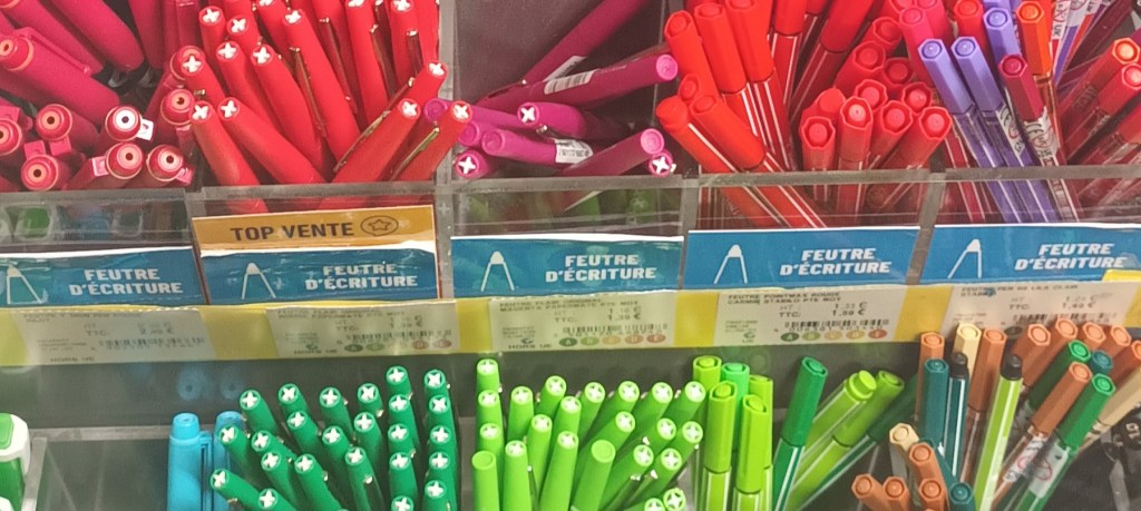 Je sèche sur un article. Avant la réunion, je passe à la papeterie chercher des feutres pour ma chérie, mais, malgré l’abondance, je ne trouve pas la bonne couleur.
