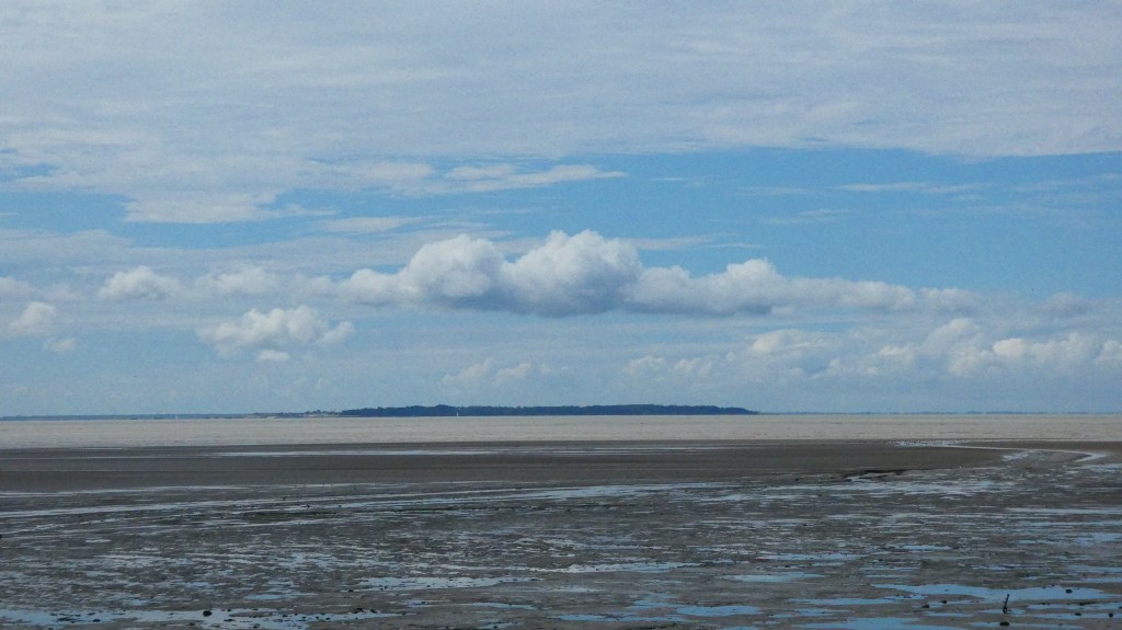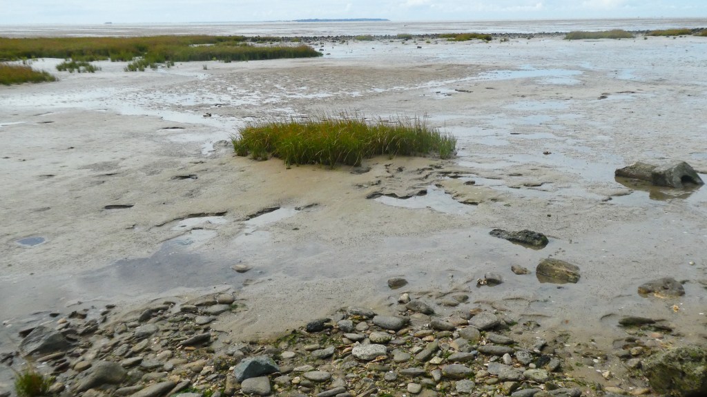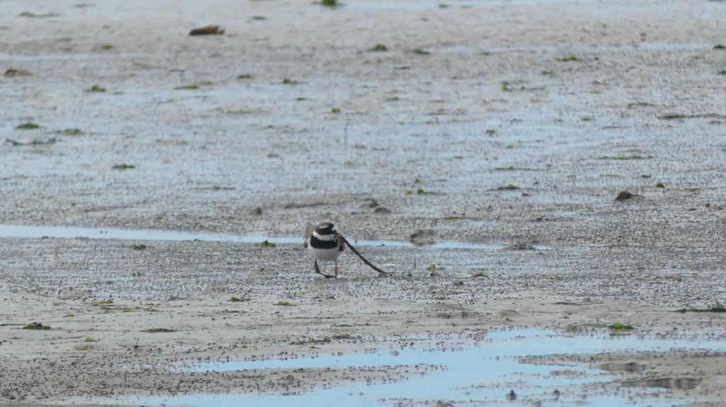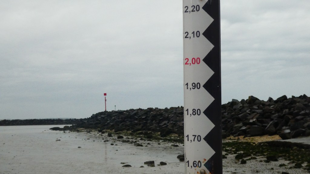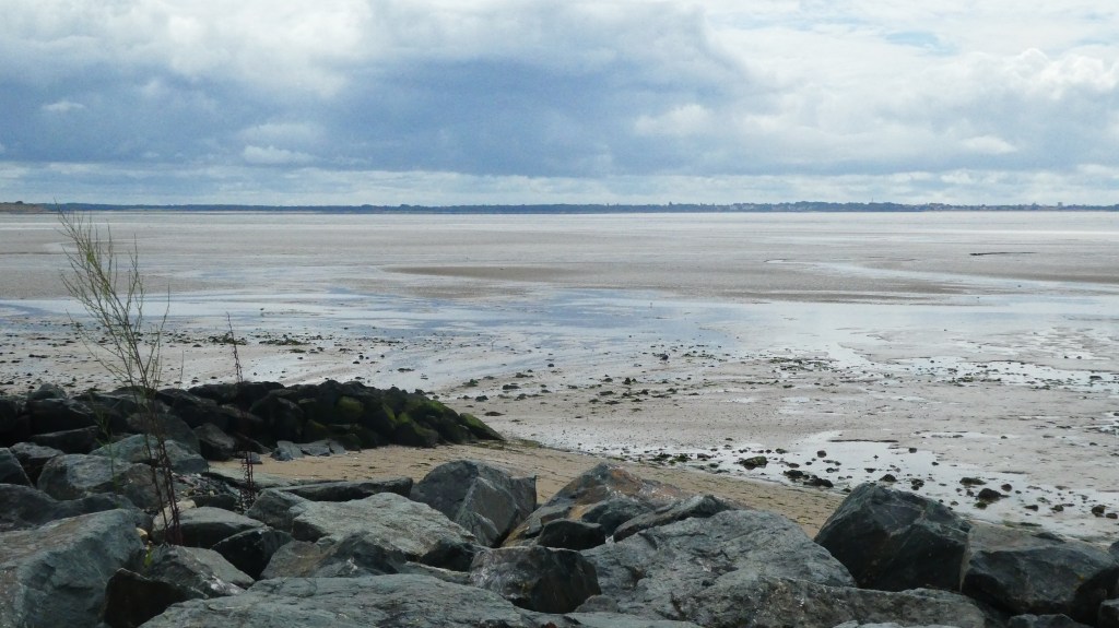 Je vais marcher sur la plage, déserte ou presque. Je m’amuse d’un épagneul qui court après les bécasseaux sans jamais parvenir à les attraper, évidemment. J’observe du coin de l’œil un autre promeneur qui fait des gestes de gymnastique sur la digue. On dirait un sémaphore. Je prends sa place sur la digue, sans faire les gestes. Je prends quelques photos.