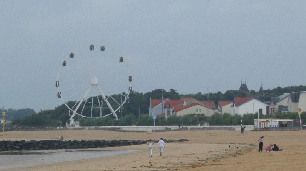 Je vais m’asseoir quelques minutes sur la plage. La grande roue est presque entièrement démontée, les nacelles et la roue ont été descendues, il ne reste plus que le support. Il n’y a plus que de très petits groupes à se balader ou à se poser sur le sable. La mer est bleue, on entend que le bruit des vagues. L’arrière-saison est un moment que j’apprécie tout particulièrement. Difficile à ce moment-là de se convaincre que travailler ait une quelconque importance.