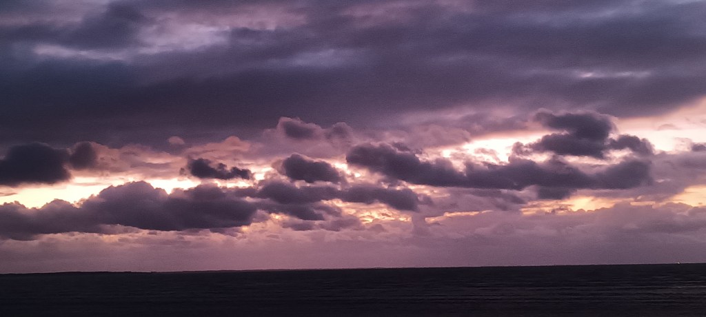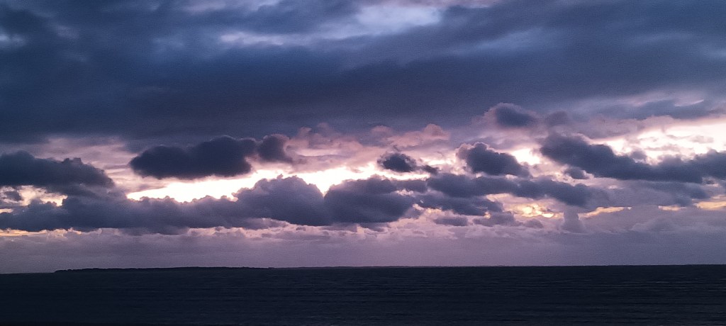 Après un peu d’hésitation, je brave la tempête naissante et je cours 54 minutes. A l’aller, un vent gentiment joueur me pousse dans le dos, je suis presque obligé de me ralentir. Je sais très bien ce qu’il me réserve au retour, et ça ne manque pas, j’ai un vent constant en pleine face, plus quelques bourrasques qui m’obligent presque à du sur-place. J’évite la pluie mais pas les embruns qui se jettent sur les enrochements, le long du chemin littoral.