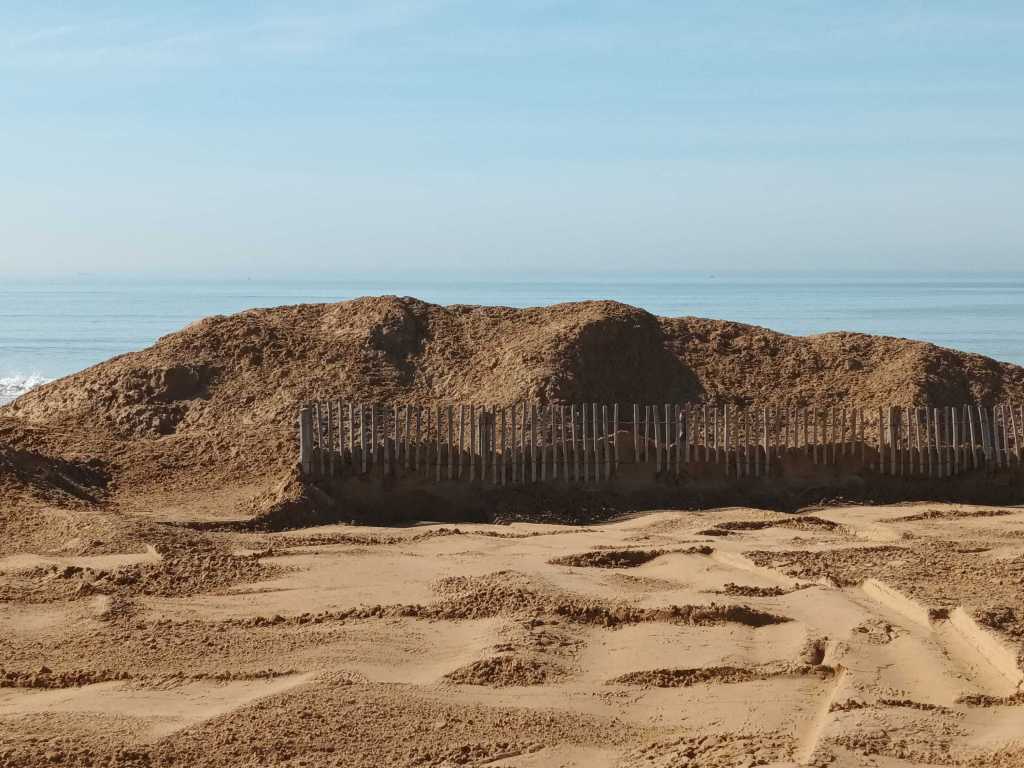 - Le défilé des pelleteuses et des camions-benne a repris sur la plage, qui enlèvent du sable à un bout pour le déverser à l’autre.