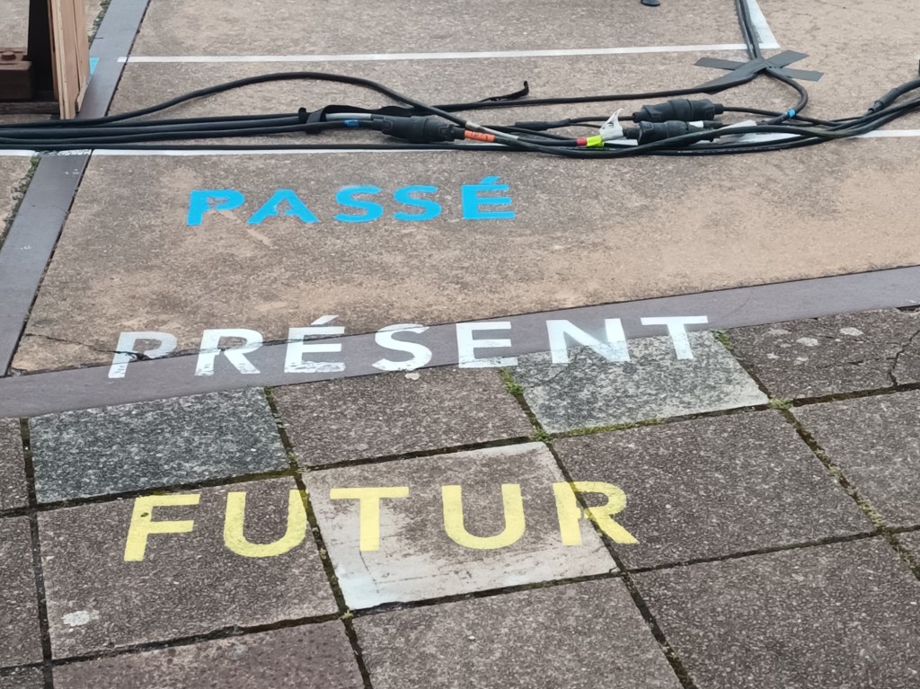 J’accompagne E. à la sortie de résidence d’une compagnie de théâtre de rue, qui propose une création sur le passage du temps sur les lieux.