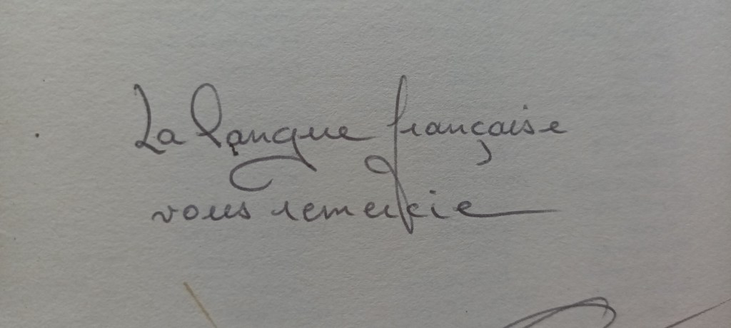 Je passe un peu de temps à la médiathèque. Je troque le journal de Mario Levrero contre celui Pierre Bergounioux. Tandis que je lis dans une chauffeuse au soleil, la chaussure d’une femme couine à chaque pas. Tandis que je lis dans une chauffeuse au soleil, quelqu’un pète sans retenue derrière moi et je n’ose pas me retourner. Sur la dernière page d’un livre de Bergounioux, une personne âgée (si j’en crois l’écriture) a écrit au stylo « La langue française vous remercie. »