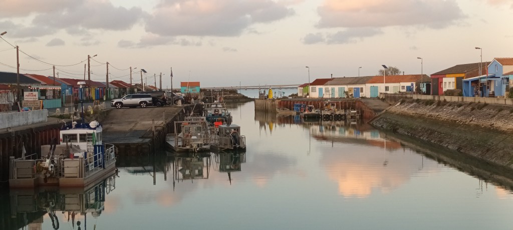 - Je cours à bon rythme, à mon rythme, et je regarde : la plage, la mer, l’horizon, l’île sur l’horizon, les dunes, la végétation des dunes, le chemin côtier, le port de plaisance, le port ostréicole, la baie, les oiseaux dans le marais.